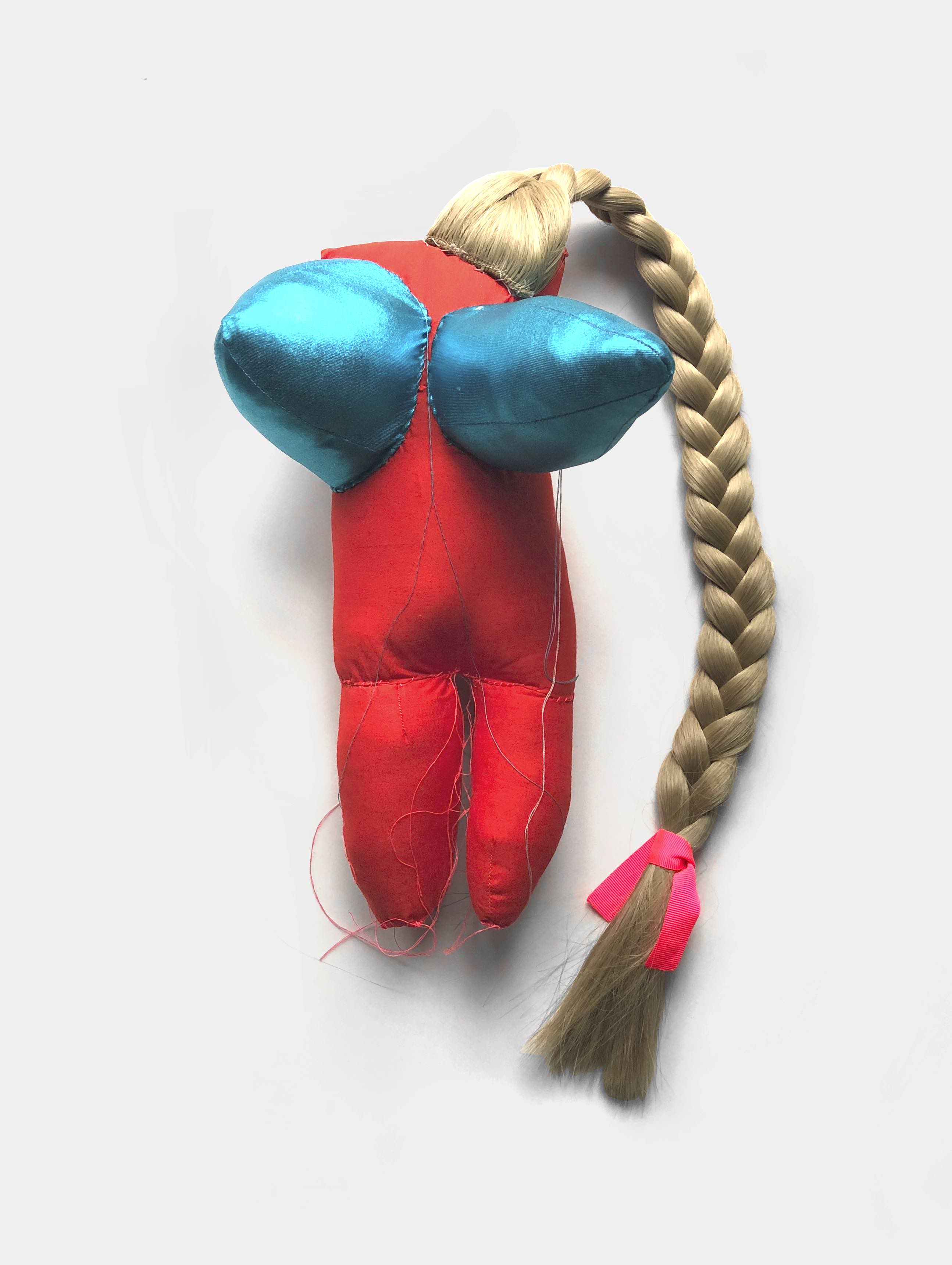 2019, Fabric, wadding, thread, synthetic hair, 46×19×16cm