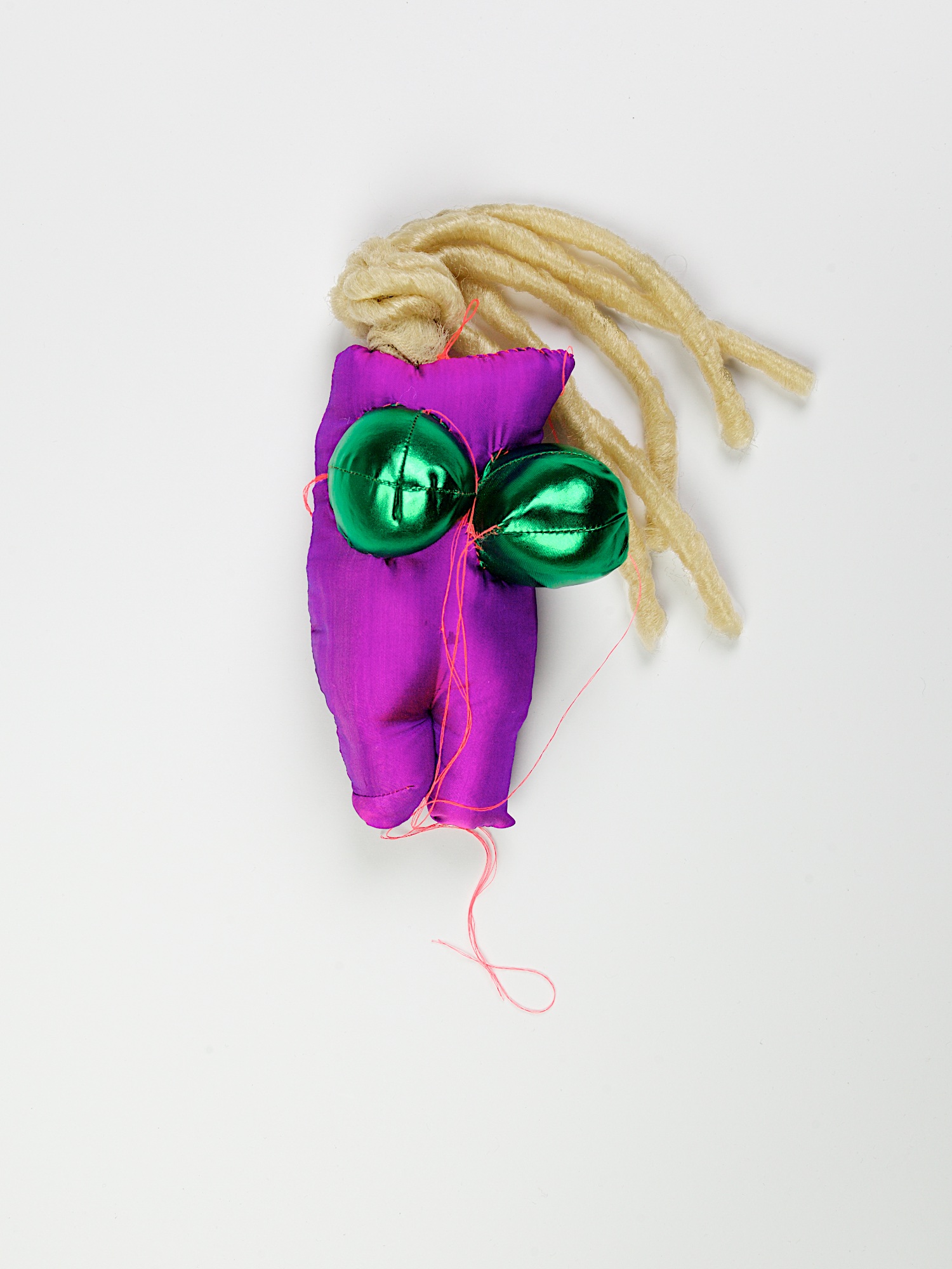 Figurine N°42, 2015, Fabric, synthetic hair, plastic, thread, 33×11×11cm