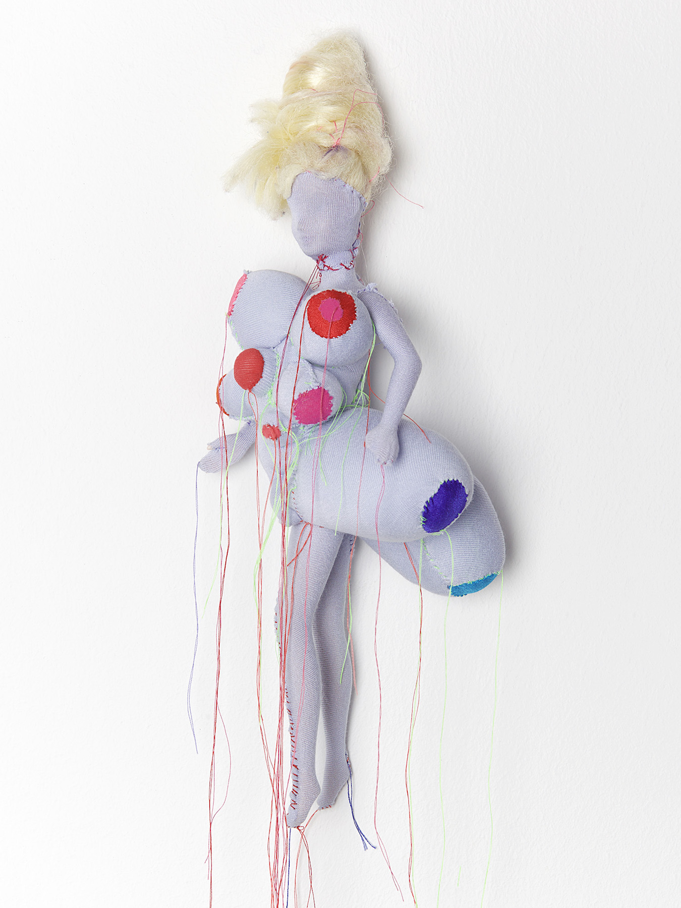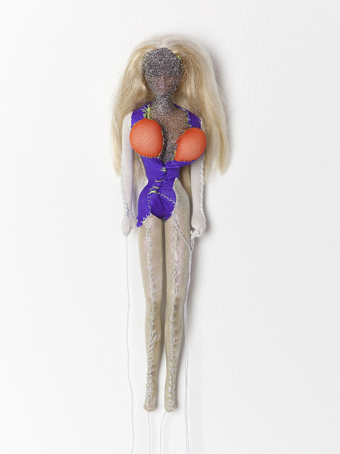 Figurine N°36, 2014, Fabric, synthetic hair, plastic, thread, 30×15×10cm
